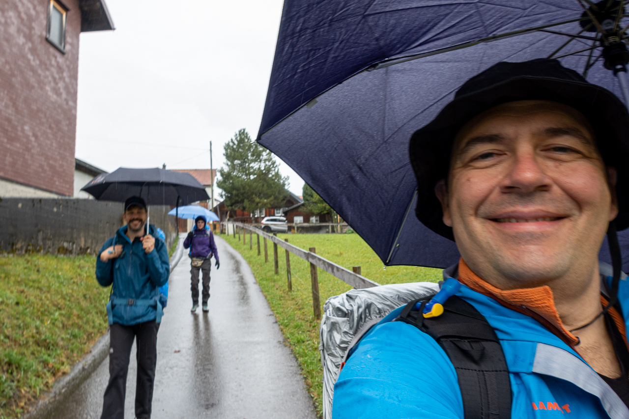 Die Wetterprognosen versprachen heute leider keinen Sonnenschein mehr. Stattdessen war Regen angesagt. Somit konnte Dani seine kurzen Hosen, welche er gestern noch trug, wieder im Rucksack verstauen. Und ich brauche wohl kein grosser Prophet zu sein, um zu sagen, dass dies wohl bis zum Ende unserer Wanderung so bleiben wird. Selbstverständlich lasse ich mich liebend gerne eines Besseren belehren!