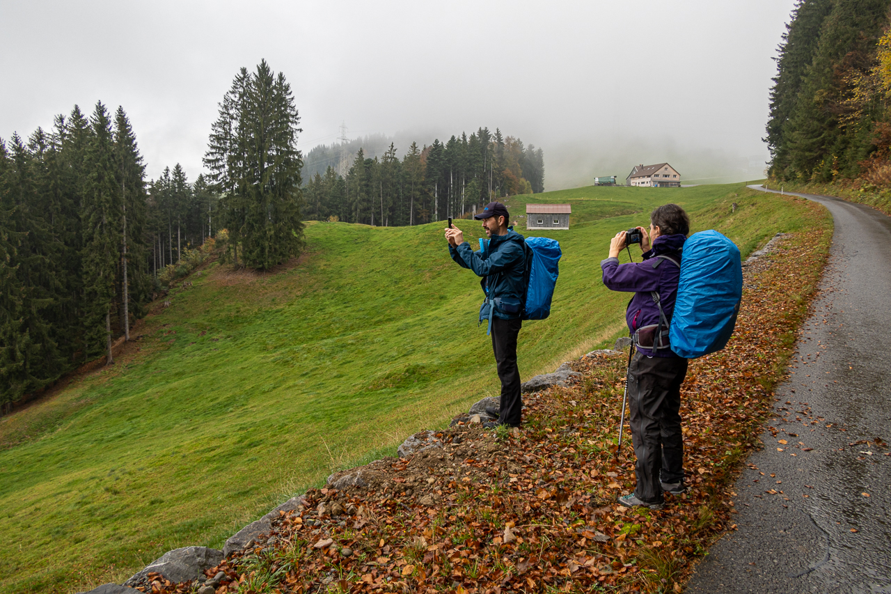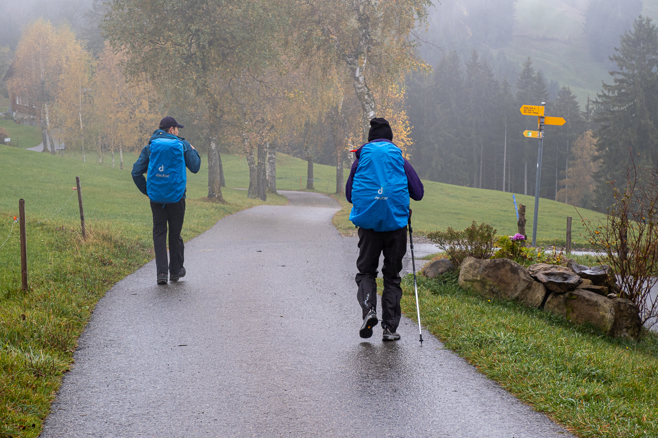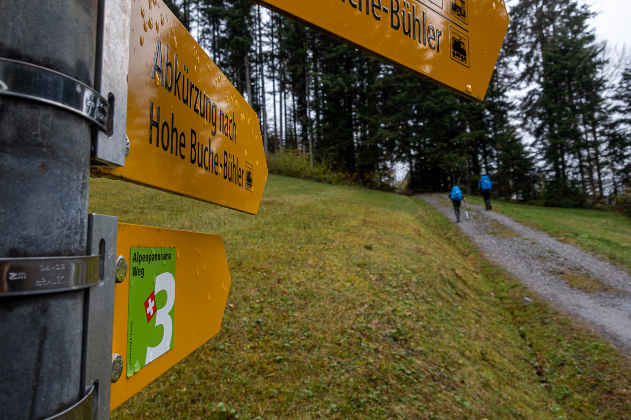 Nach dem kurzen Boxenstopp nach rund drei fünftel unserer heutigen Etappe nahmen wir die restlichen Kilometer in Angriff. Nachdem uns der Regen kurz vor Bühler mal wieder einen Besuch abstattete, durften wir nach der Pause wieder im Trockenen weiterwandern.
