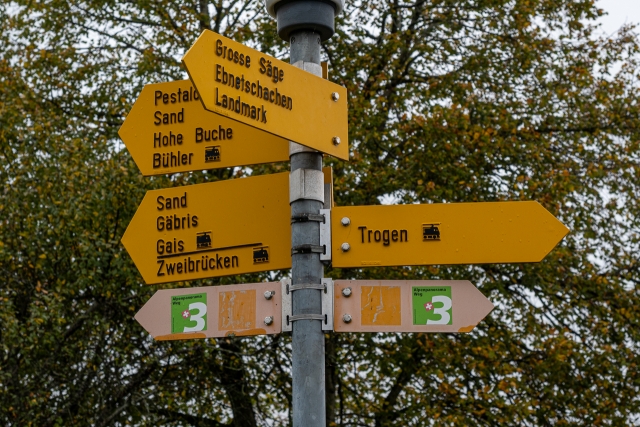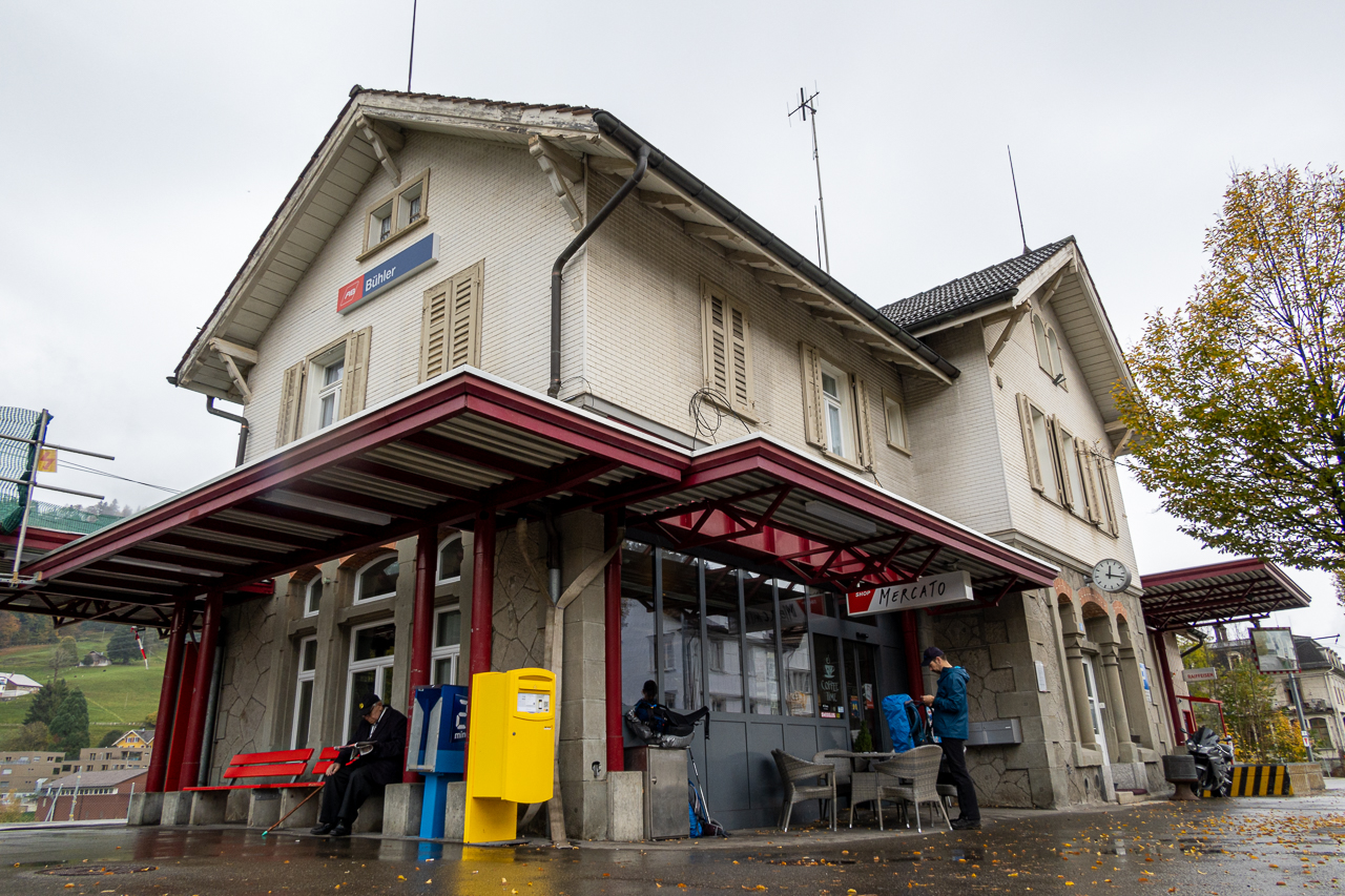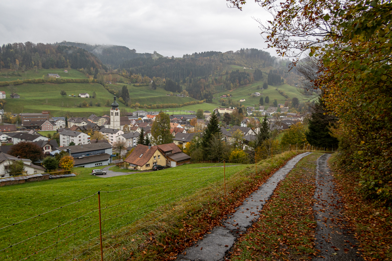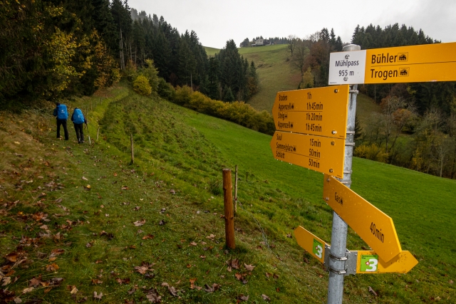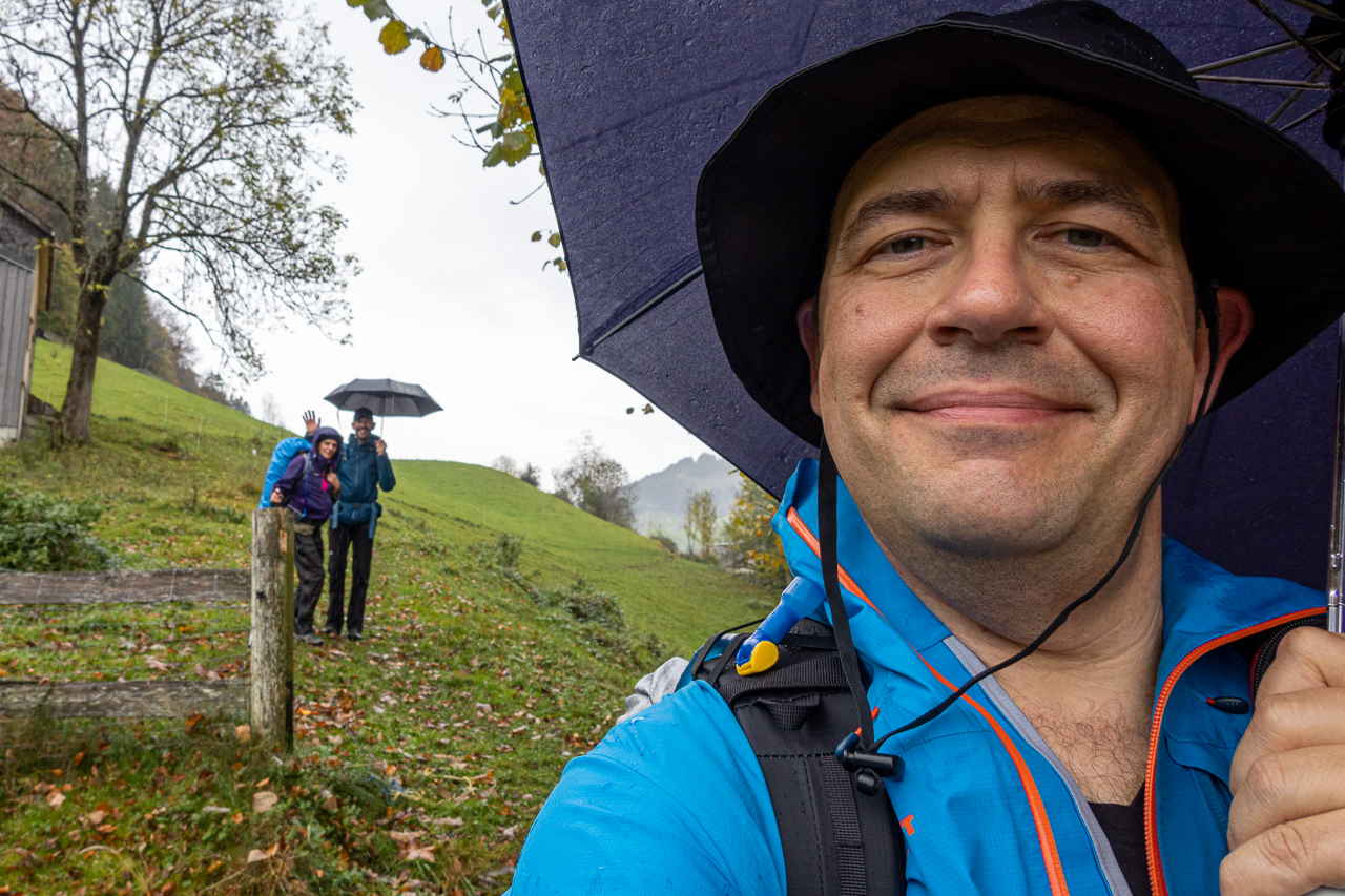 Nach dem kurzen Boxenstopp nach rund drei fünftel unserer heutigen Etappe nahmen wir die restlichen Kilometer in Angriff. Nachdem uns der Regen kurz vor Bühler mal wieder einen Besuch abstattete, durften wir nach der Pause wieder im Trockenen weiterwandern.