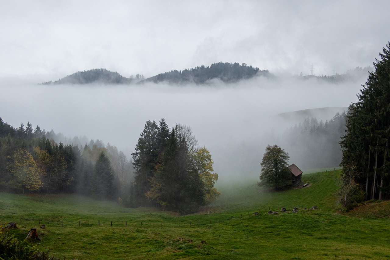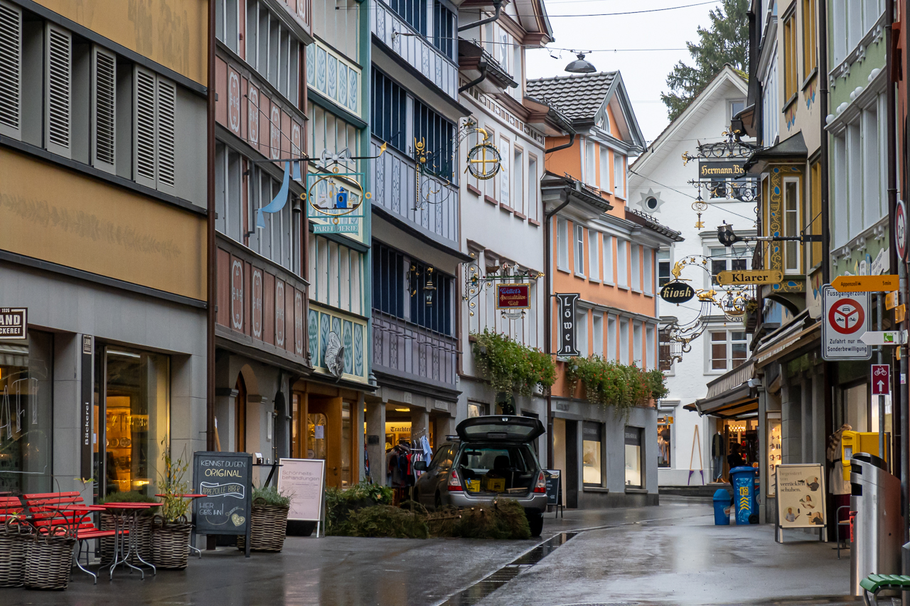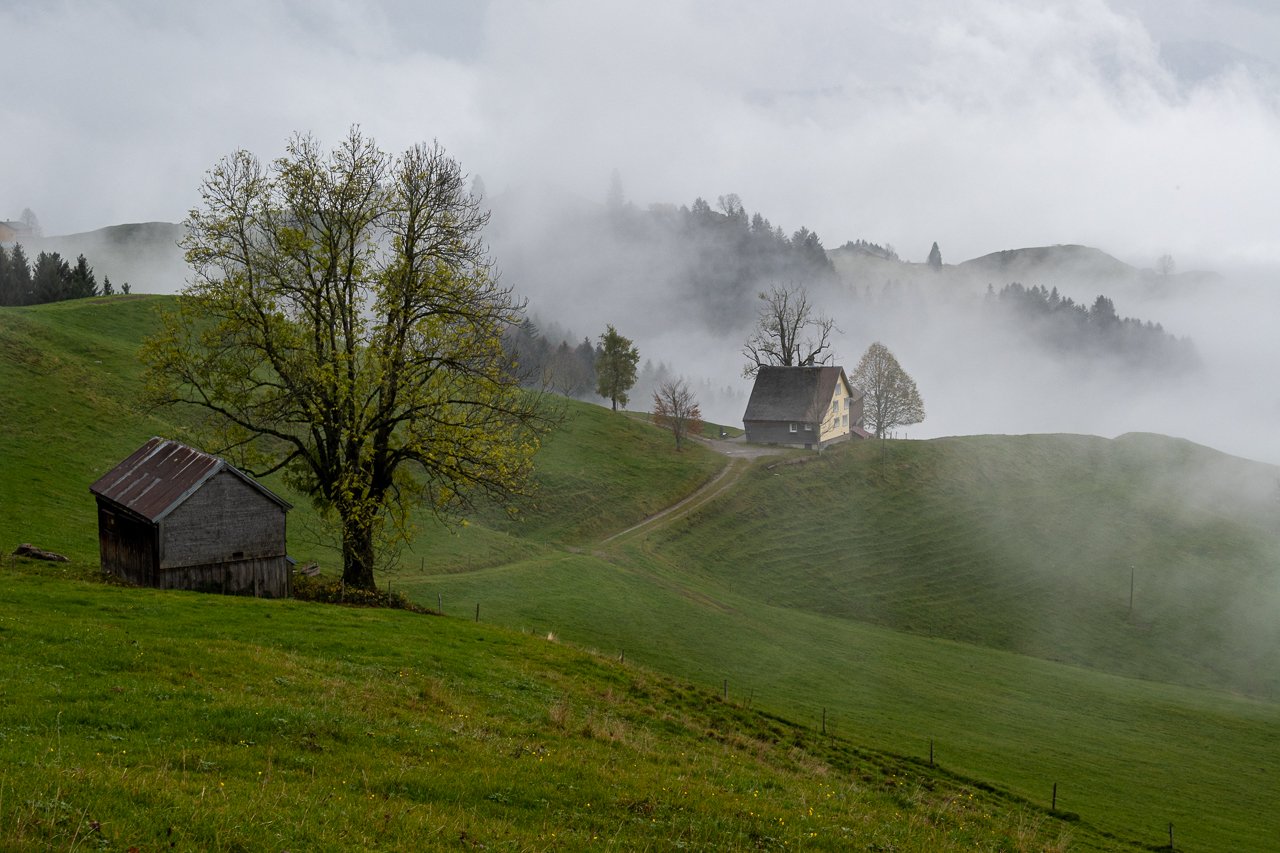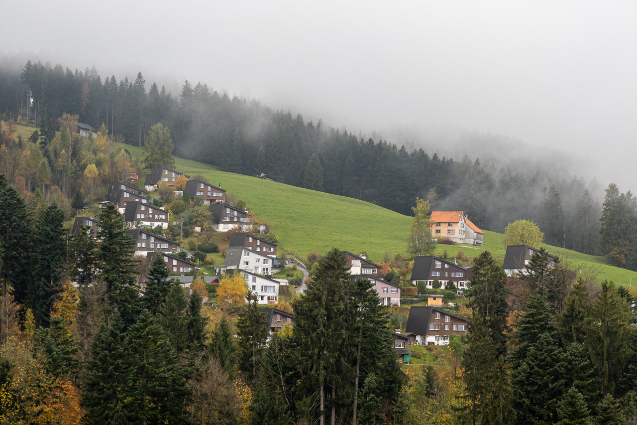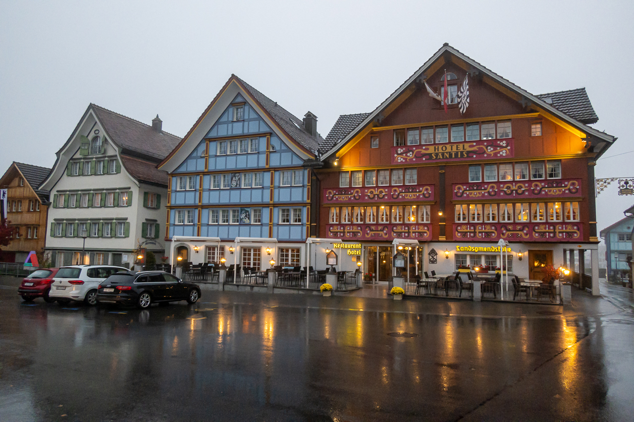 Im Appenzellerland wundert mich sowas gar nichtIm Aufstieg von Bühler bis SaulHübscher Frosch mitten auf dem WanderwegMir gefällt die mystische StimmungInseln im NebelmeerWenn Paparazzis Paparazzis fotografieren, die wiederum von einem Paparazzi fotografiert werdenSpiegelbilder 1Kurz vor Appenzell noch ein kleines Schlüchtchen durchquerenDann gibt der Nebel endlich die Sicht auf Appenzell freiPrächtiger BaumWir sind in Appenzell angekommenUnser schönes Zimmer im Hotel LöwenSpiegelbilder 2Willkommensgruss auf dem Kopfkissen