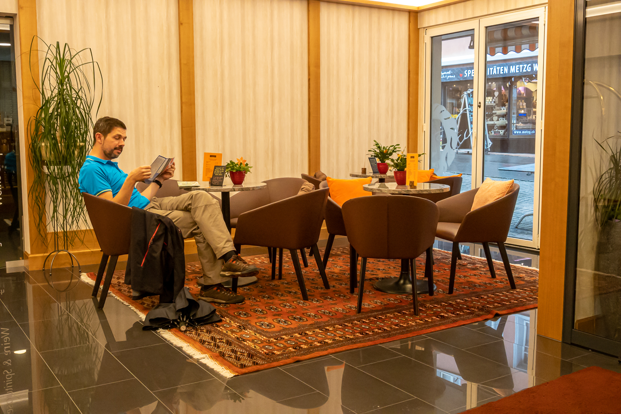 Unser gesamtes Hab und Gut liegt bereit zum EinpackenWir geniessen das Zmorge im charmanten Hotel Appenzellerhof